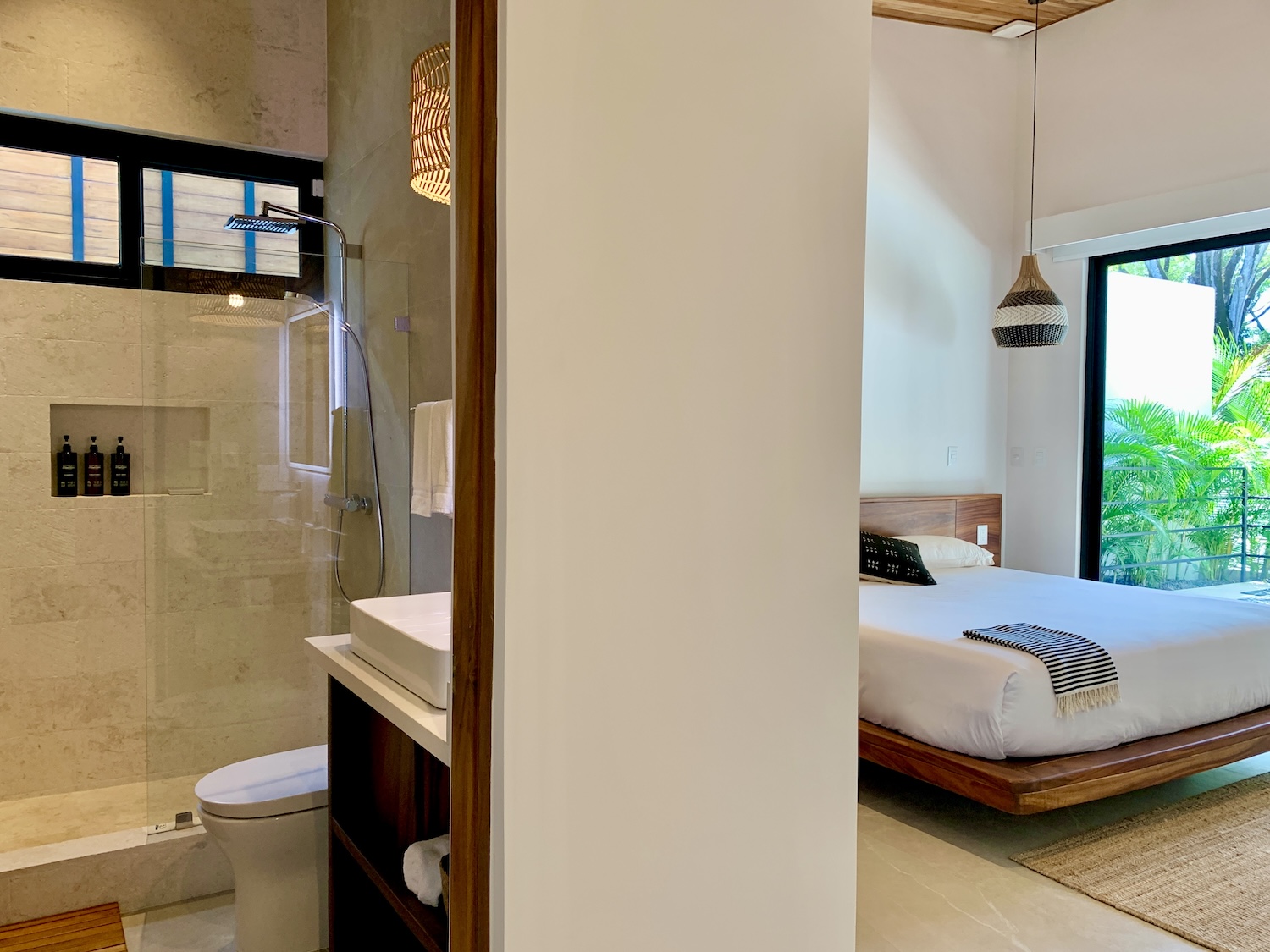 Tucked away in the serene beauty of Guiones Beach, Nosara, Honu Villas – WAI is a luxurious 2-bedroom, 2-bathroom retreat designed for travelers seeking both relaxation and adventure. Just an 8-minute walk to Playa Guiones, this villa offers an ideal escape for couples, small families, and surf enthusiasts looking for a private, comfortable stay in one of Costa Rica’s best beach destinations.
