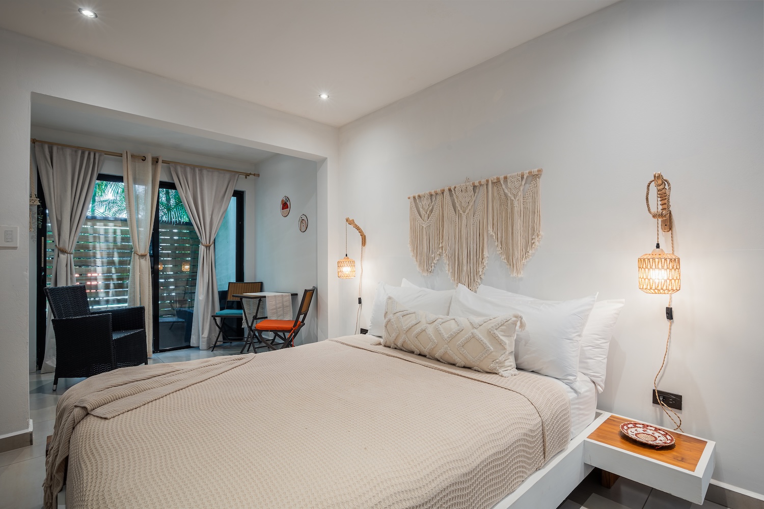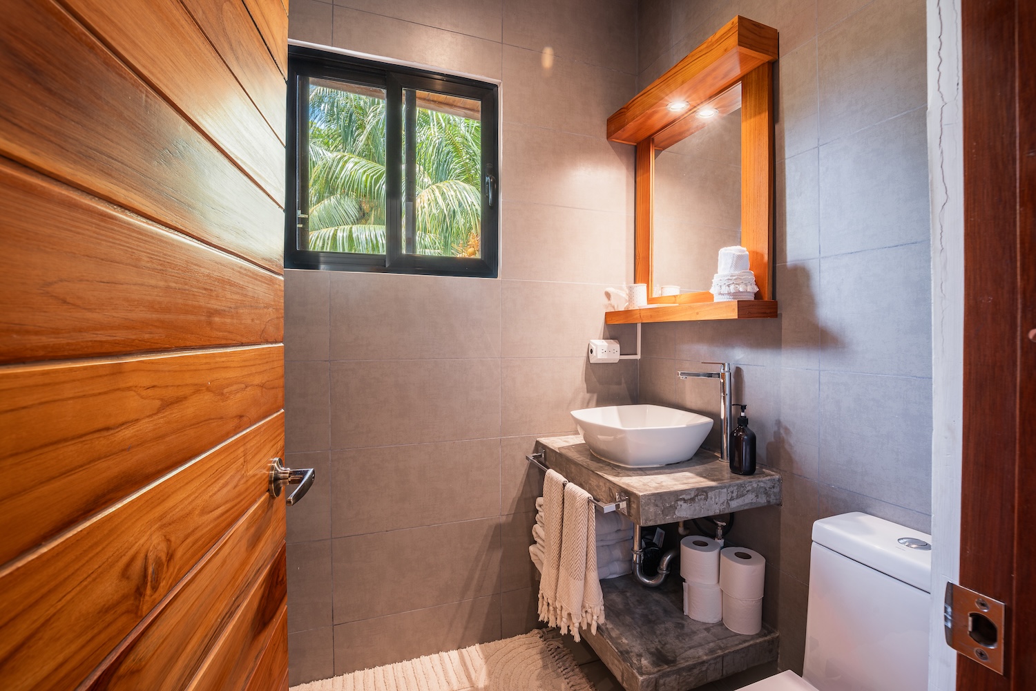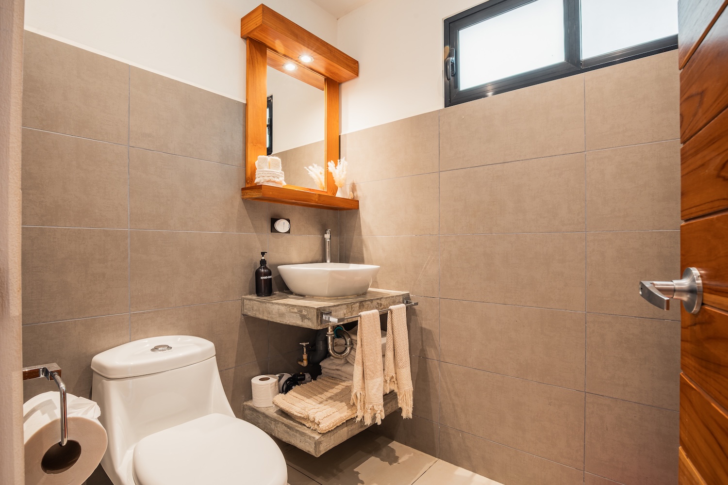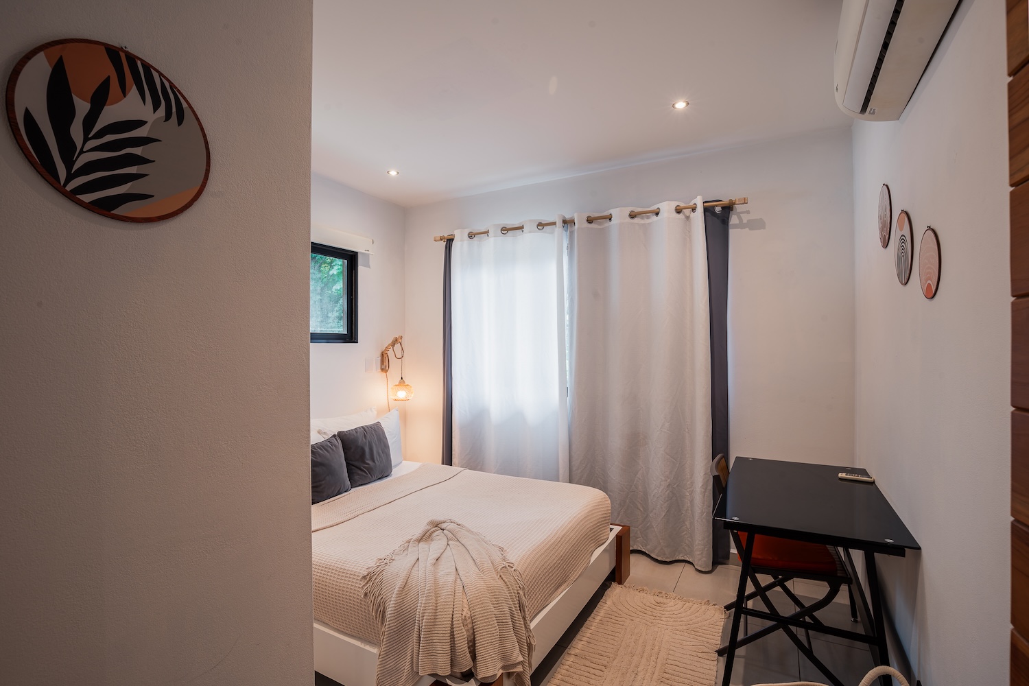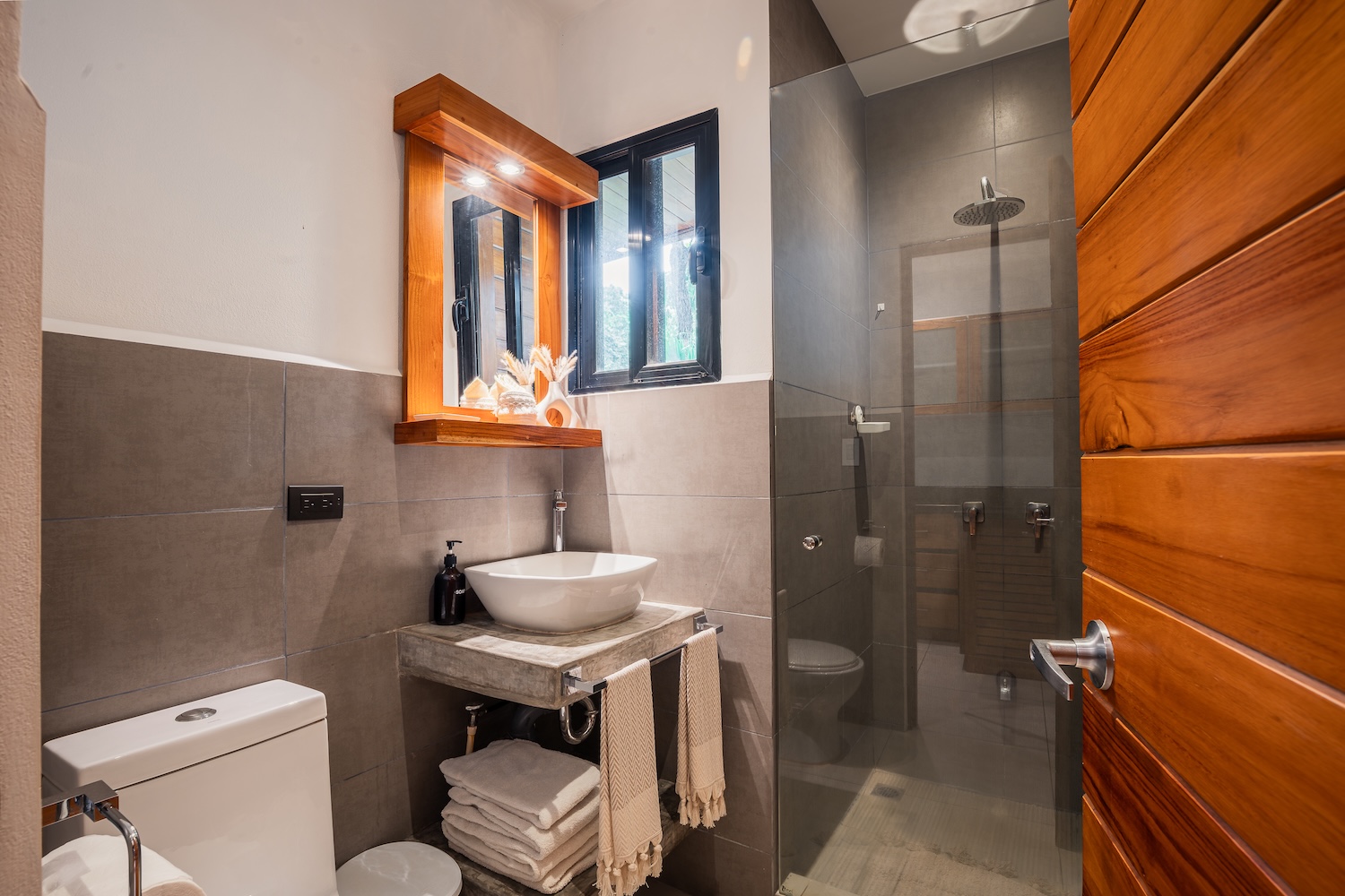 Less than a 5-minute walk to the beautiful white sand beach, lined with palm trees and a green mountain background, to the best restaurants in town. Plantara is conveniently located minutes from the Gilded Iguana Hotel Bar & Restaurant, flanked by Destiny Café for a fresh smoothie or bowl in the morning, El Jardin Coffee Bus for your world-famous Costa Rican morning coffee, La Brasa Argentinian Grill, and Guiones Brewing Company for an excellent evening meal.