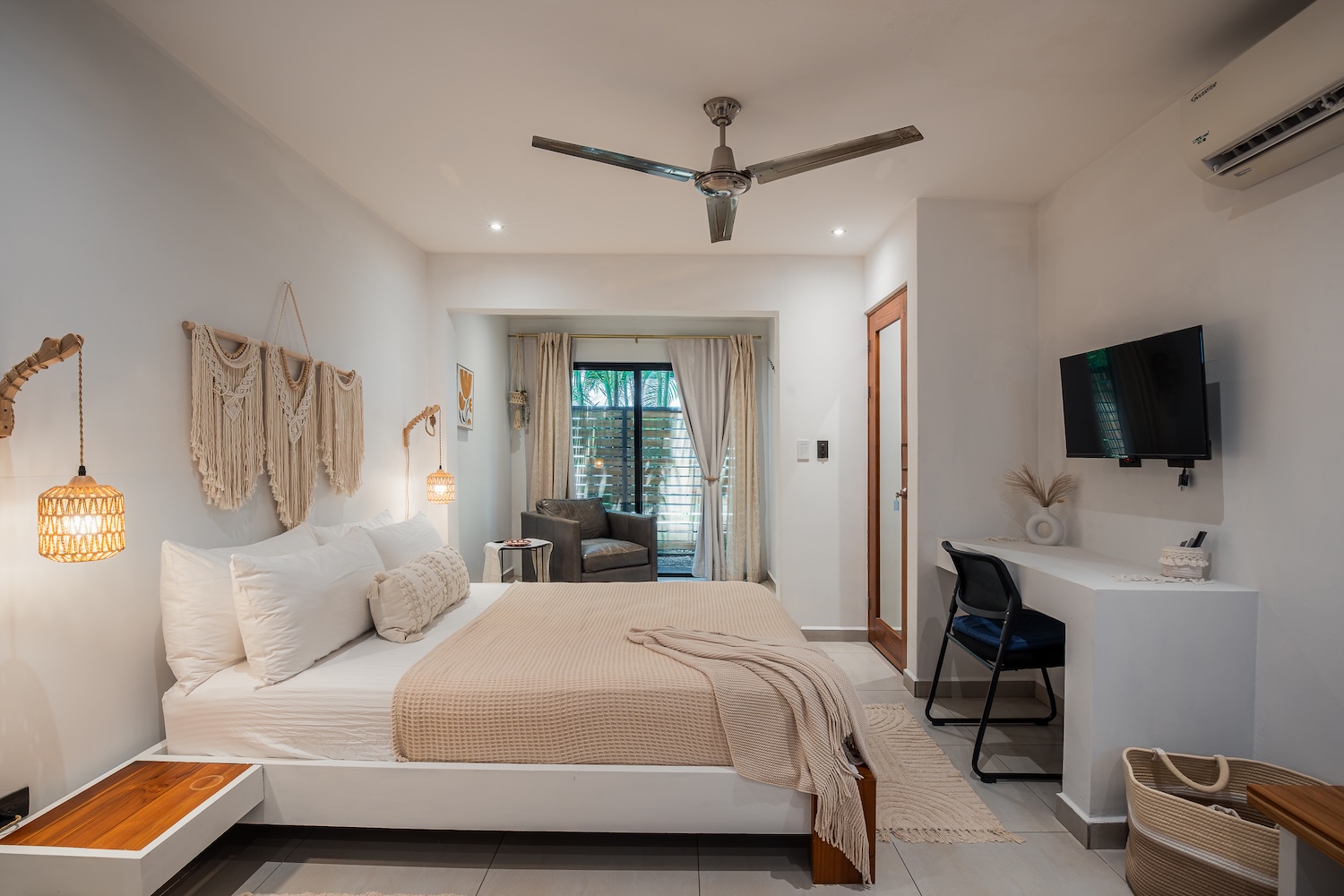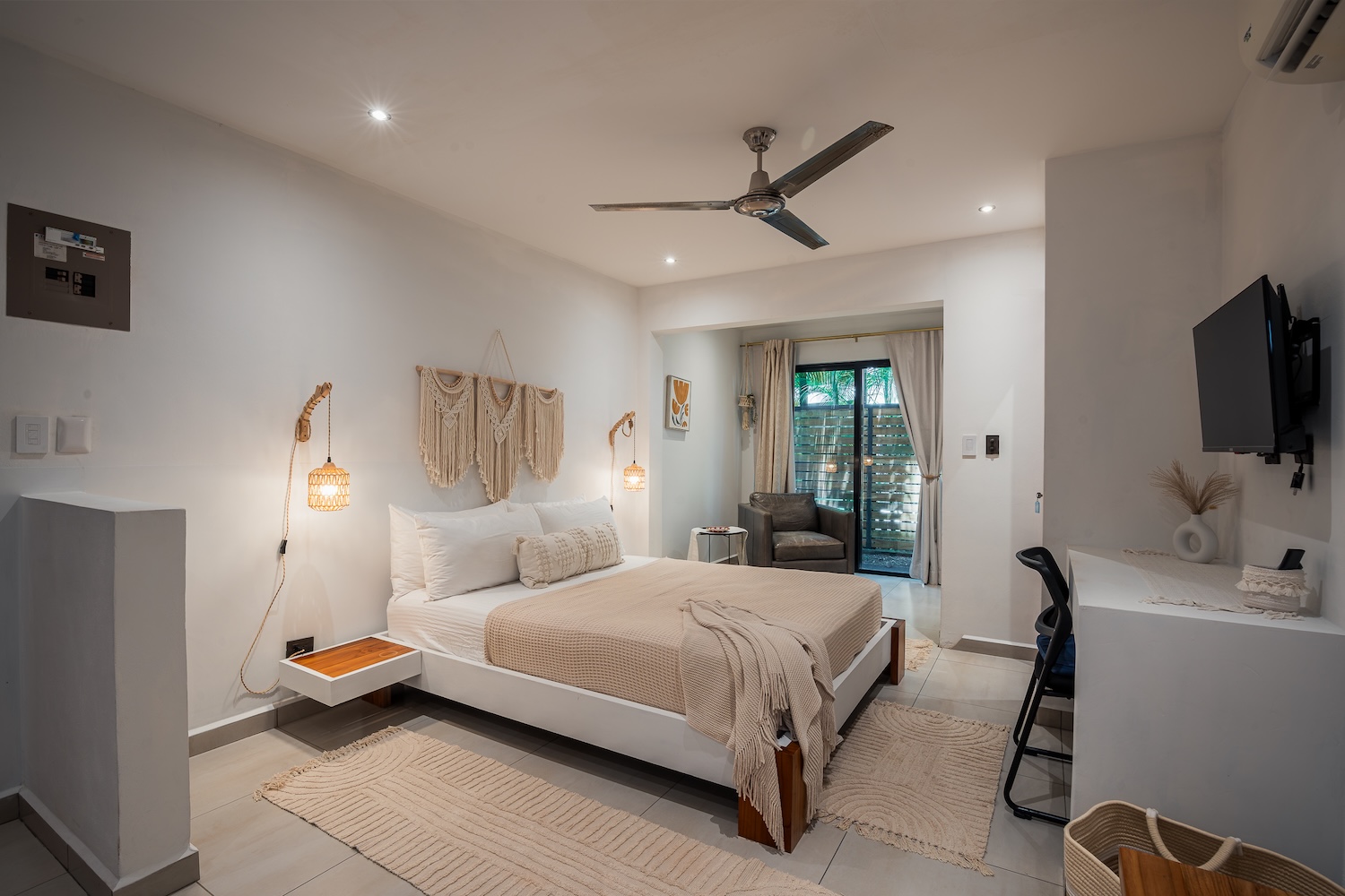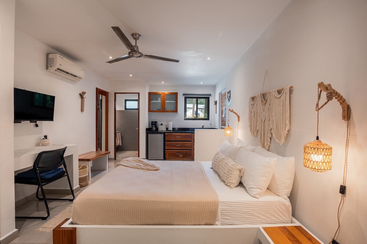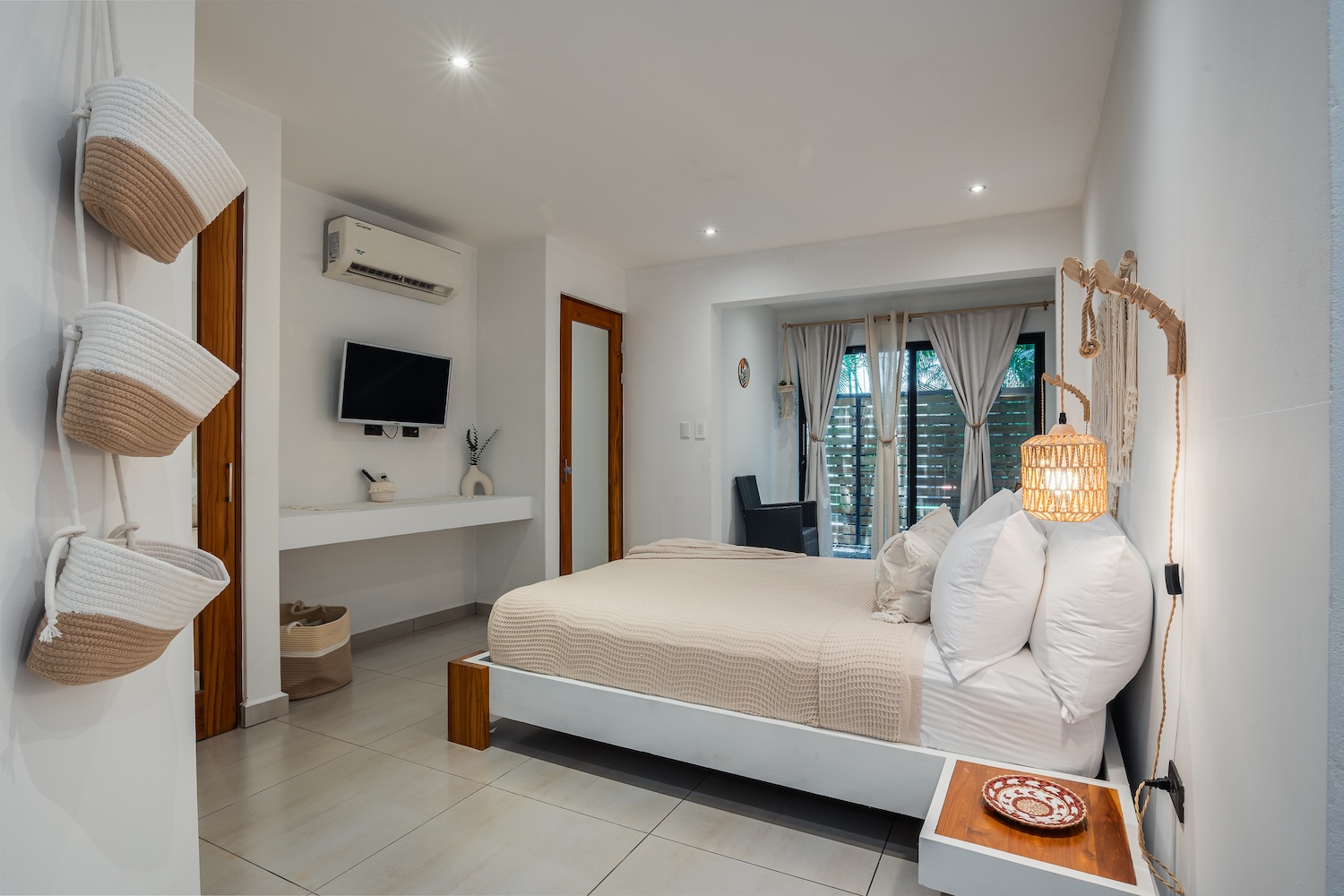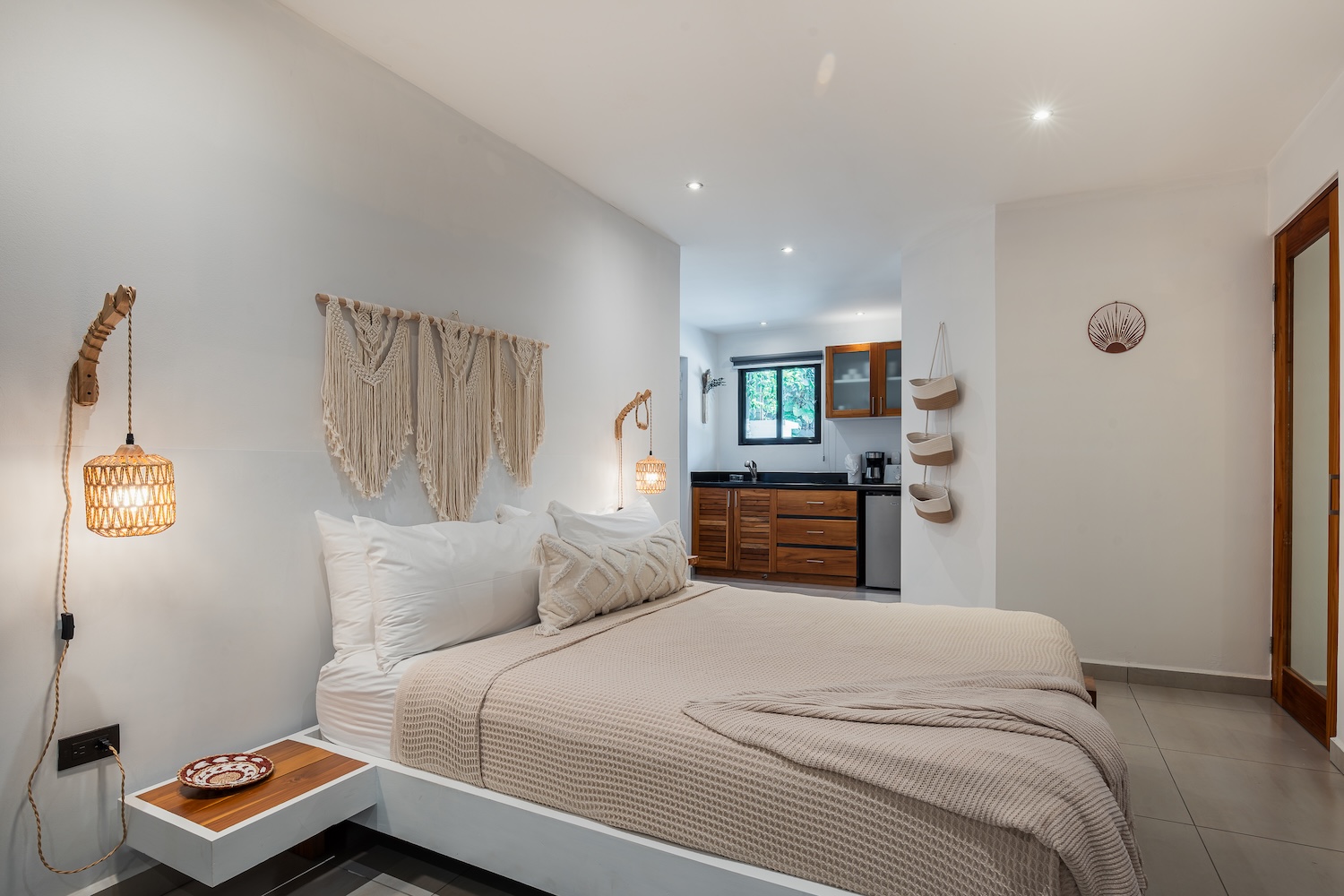 Less than a 5-minute walk to the beautiful white sand beach, lined with palm trees and a green mountain background, to the best restaurants in town. Plantara is conveniently located minutes from the Gilded Iguana Hotel Bar & Restaurant, flanked by Destiny Café for a fresh smoothie or bowl in the morning, El Jardin Coffee Bus for your world-famous Costa Rican morning coffee, La Brasa Argentinian Grill, and Guiones Brewing Company for an excellent evening meal.